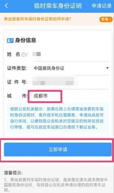 电子临时乘车身份证明申请入口