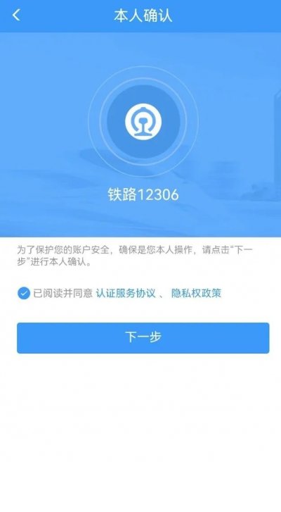 点击温馨提示的“同意”选项后,进入本人确认页面,勾选阅读选项,点击“下一步”进行“实人核验”;